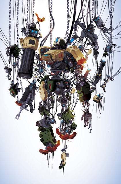 Overwatch fan art, I saw this Bastion piece that was immediately apparent as the work of Justin Currie.